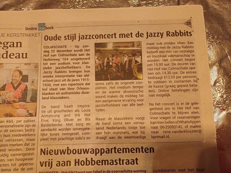 Concert 22 December 2024 in Hof van Colmschate met de Jazzy Rabbits......